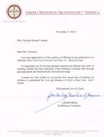 I was honored to receive a personal letter from Archbishop Demetrios congratulating me on the publication of this book!